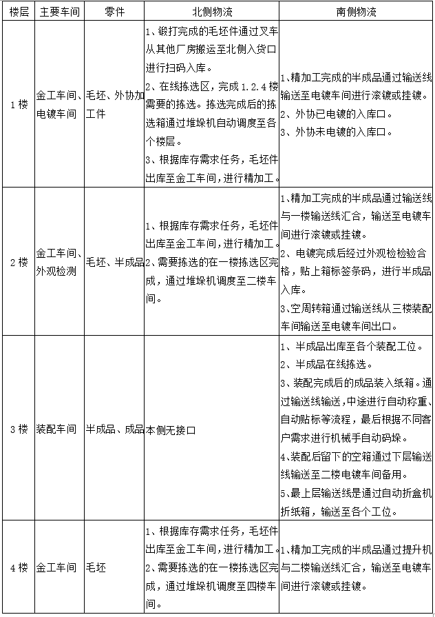 物流中心四層:毛坯出庫(整箱),加工件去一樓進(jìn)行電鍍;