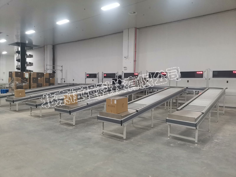 電子標(biāo)簽揀選作業(yè)區(qū)作為將來貨到人自動揀選系統(tǒng)的過渡,設(shè)置有3組流利貨架,拆零商品通過電子標(biāo)簽揀選后放到指定的播種車上完成不同商品的分類。工作人員將播種車推到附近的打包復(fù)核區(qū)進(jìn)行打包,打包后的紙箱通過箱式輸送線到一樓分揀機(jī)分揀。